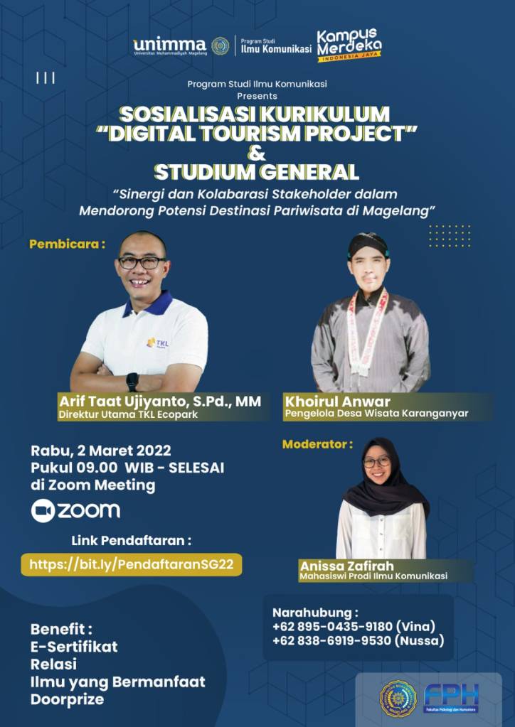 Terimakasih Civitas Akademika Program Studi Ilmu Komunikasi Universitas Muhammadiyah Magelang, atas kesempatanya untuk sharing dan belajar bersama di dalam agenda Stadium General yang dilaksanakan secara Hibrid (Online dan Offline). Berikut materi yang saya sampaikan dalam agenda tersebut :