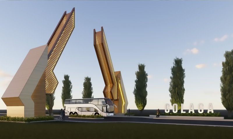 Landmark berbentuk gerbang artistik bercahaya hangat ini menjadi simbol semangat baru Golaga dalam menyambut wisatawan dari berbagai daerah. Desainnya memadukan unsur modern, alam, dan budaya lokal, menampilkan kesan kokoh sekaligus ramah